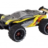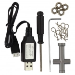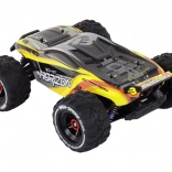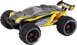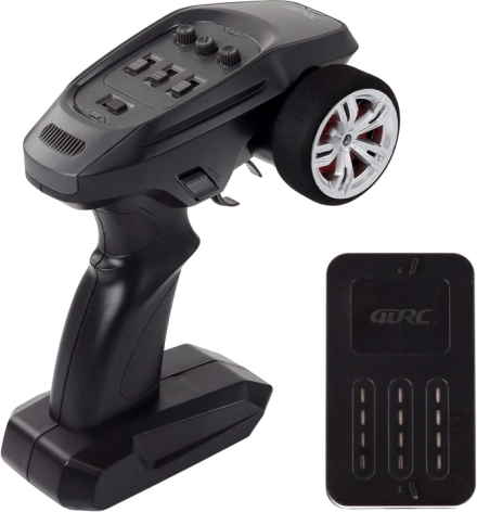 Dank LED-Scheinwerfern macht das Modell auch bei Abendfahrten Eindruck. Der 1400-mAh-Akku bietet 12–16 Minuten Fahrzeit pro Ladung und lässt sich mit dem beiliegenden USB-Ladegerät einfach aufladen. Die Fernsteuerung mit einer Reichweite von bis zu 60 Metern verwendet gängige AA-Batterien.