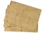 - Kreatives Erlebnis: Der Holzmodellbau erfolgt durch systematisches Herauslösen von Teilen aus vorgeschnittenen Holzfurnierplatten, die gemäß der bebilderten Anleitung zusammengefügt werden.