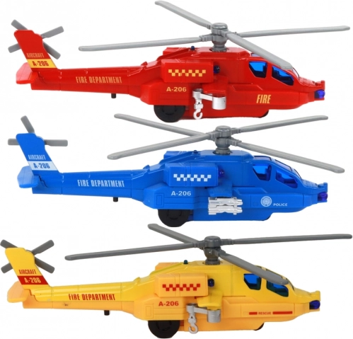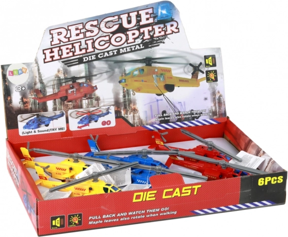 Das Spielzeug besteht aus aluminium Material, das ihm nicht nur eine stabile Struktur, sondern auch eine Optik verleiht, die echten Rettungshubschraubern ähnelt. Jedes Modell hat einen eingebauten Antrieb, dank dem es sich nach dem Aufziehen bewegt und die Rotoren drehen sich, was den Realismus und den Spaß erhöht.
