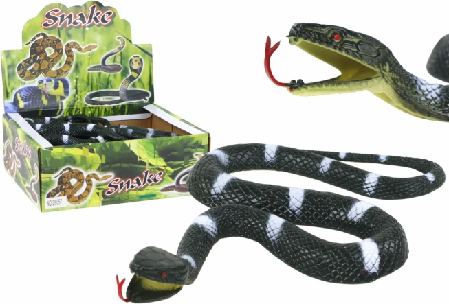 Künstliche Gummischlange schwarz mit weißen Streifen ist ein lustiges Spielzeug, das nicht nur für Kinder, sondern auch als dekoratives Element geeignet ist. Ihr realistisches Aussehen und ihre flexible Konstruktion bieten viele Verwendungsmöglichkeiten.