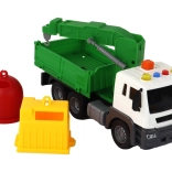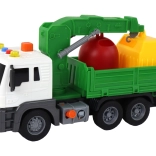 Der interaktive Kran auf dem Dach hebt sich per Druck auf den orangefarbenen Knopf, sodass Kinder Container be- und entladen können. Enthalten sind 2 farbige Behälter und 4 Kärtchen mit Abfallarten, die spielerisch die Prinzipien von Recycling und Umweltschutz vermitteln. Die kompakten Abmessungen sind ideal zum Spielen drinnen und draußen.