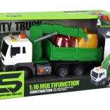 Dieses grüne Kinderspielzeug-Müllauto mit Kran bietet jede Menge Action und Lerneffekte. Dank Reibungsantrieb reicht es, das Auto nach hinten zu ziehen und loszulassen – es fährt von selbst nach vorne. Soundeffekte (Hupe, Motorstart, Rückwärtsfahren) verstärken das realistische Erlebnis und fördern die Fantasie.