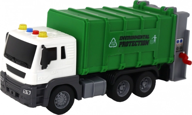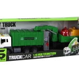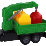 Grünes Müllfahrzeug mit Kran und Reibungsantrieb 1:16