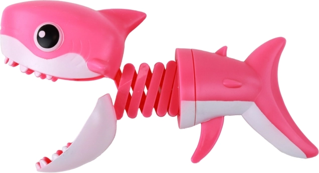 Der Hai besteht aus strapazierfähigen Materialien, die eine lange Lebensdauer gewährleisten. Die rosa Farbe verleiht dem Spielzeug ein attraktives Aussehen. Außerdem helfen Spiele mit dem Mechanismus, die motorischen Fähigkeiten der Kinder zu entwickeln.
