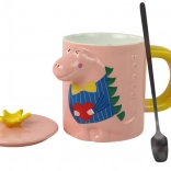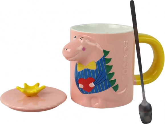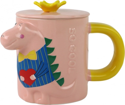 Dieser stilvolle Keramikbecher vereint Funktionalität und verspieltes Design. Der rosafarbene Korpus mit gelbem Henkel wird durch einen Deckel mit gelber Krone ergänzt, der das Getränk schützt und den originellen Look abrundet. Das erhabene 3D-Dinosauriermotiv sorgt bei jedem Schluck für Freude – ideal für Kaffee, Tee und Kakao.