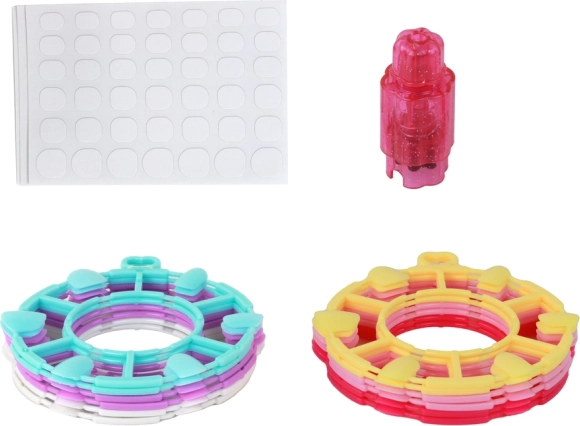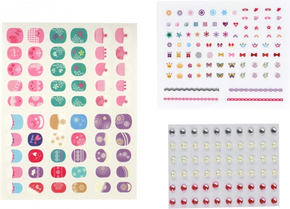Dieses zauberhafte Nagelset ist für kleine Stylistinnen gedacht, die Farben und kreatives Spielen lieben. Kinder können mit Tips, Stickern und glitzernden Dekorationen eigene, originelle Designs gestalten – einfach und sicher.