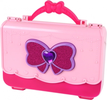 Der leichte, kompakte Koffer mit glitzernder Schleife bewahrt alle Accessoires ordentlich auf und ist ideal für unterwegs und zum Spielen zu Hause.