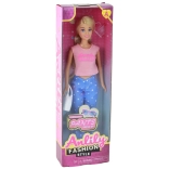 Entdecken Sie die Puppe Anlily, die zu stundenlanger Kreativität und Modespielen inspiriert. Dank ihrer langen blonden Haare und blauen Augen können Kinder kämmen, schmücken und unzählige Frisuren kreieren. Das stylische Outfit mit rosa Bluse und Hosen mit Sternen verleiht der Puppe einen modernen Look.