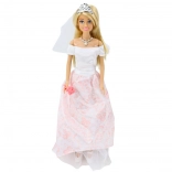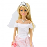 Elegantes Diadem und Halskette zusammen mit Blumenstrauß verleihen der Puppe eine noble Erscheinung, ideal für die Rolle der Braut.