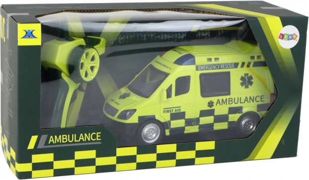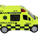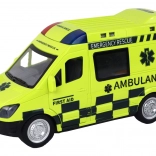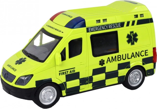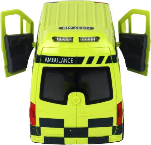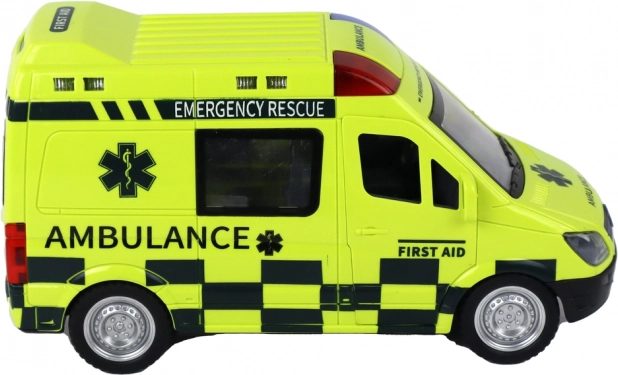 Der Rettungswagen ist so gestaltet, dass er echten Rettungsfahrzeugen detailgetreu nachempfunden ist, einschließlich detaillierter Räder, Fenster und Beschriftungen.