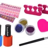 Dieses Kinder-Maniküre-Set bietet eine umfangreiche Ausstattung für spielerisches Nageldekor. Zwei Lacke (blau und orange), drei Glitzerfarben (rosa, gold, blau) und Sticker-Sets ermöglichen einzigartige Designs und einen spielerischen Einstieg in die Welt des Nail Art.