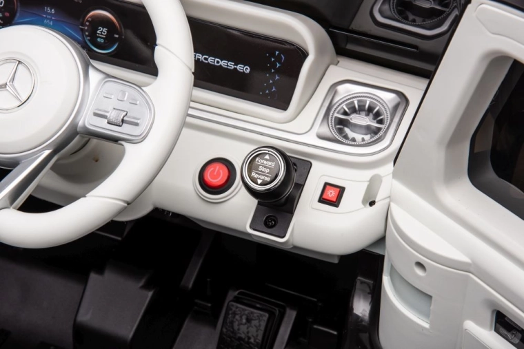 Kleiner Fahrer, große Freude. Das elektrische Kinderauto MERCEDES EQG 4x4 bietet das authentische Erscheinungsbild eines ikonischen Geländewagens mit markantem Kühlergrill, Beleuchtung und Emblem. Die robuste Kunststoffkonstruktion, frei drehende Räder und durchdachte Details fördern ein realistisches Fahrerlebnis und die Entwicklung der kindlichen Fantasie.