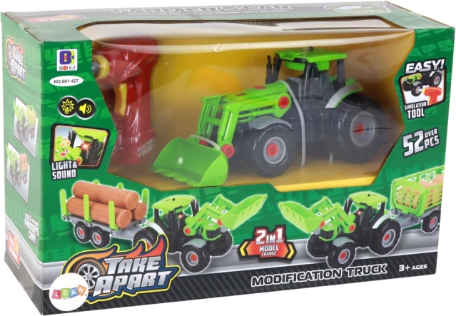 Dieser DIY-Traktor mit Anhänger ist ideal für Kinder, die Bauen und Technik lieben. Dank der vielen Teile können Kinder das Fahrzeug immer wieder zusammen- und auseinanderbauen, verschiedene Kombinationen ausprobieren und entdecken, wie die einzelnen Komponenten zusammenspielen. Realistisches Licht und der Klang eines startenden Motors verleihen dem Spiel Authentizität.