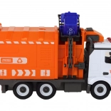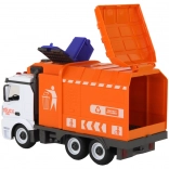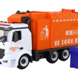 Dieses realistische Müllwagen-Set bietet Kindern stundenlangen, kreativen Spielspaß. Der orange-weiße Wagen mit funktionaler Halterung für den Behälter simuliert das Einsammeln von Abfällen originalgetreu. Den Schwungradantrieb einfach durch Anschieben auf einer glatten Oberfläche „aufziehen“ – der Wagen fährt dann von allein. Licht und Sound steigern die Authentizität des Spiels.