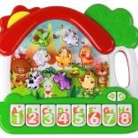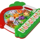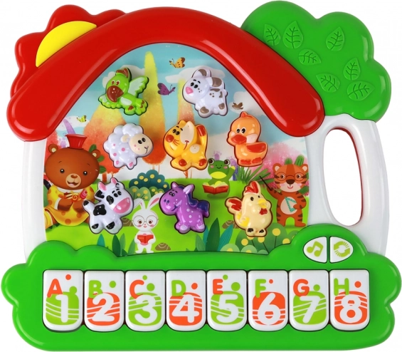 Das Klavier enthält Tasten, die von A bis H gekennzeichnet sind, was das Erlernen des englischen Alphabets erleichtert. Jeder Buchstabe ist einem bestimmten Tier und dem entsprechenden Laut zugeordnet. So lernt das Kind nicht nur die Buchstaben, sondern auch deren Aussprache und verbindet sie mit konkreten Tieren.