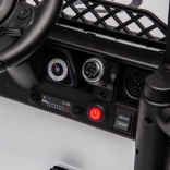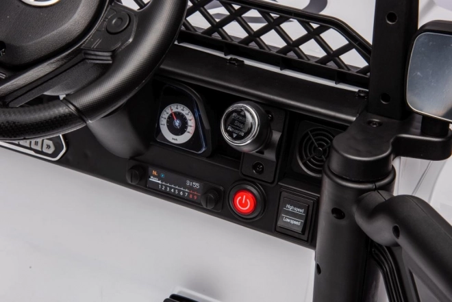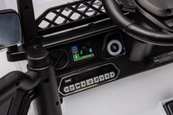 Das Kinderauto ist für Geländefahrten konzipiert, mit großen robusten Reifen und stabiler Konstruktion.