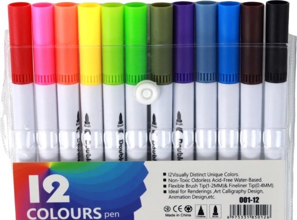 Das Set enthält 12 doppelendige Marker, die es ermöglichen, Kreativität auf die farbenfrohste Weise auszudrücken. Unabhängig davon, ob Sie ein professioneller Künstler oder Anfänger sind, unsere Marker werden Ihre Erwartungen in Qualität und Vielfalt erfüllen.