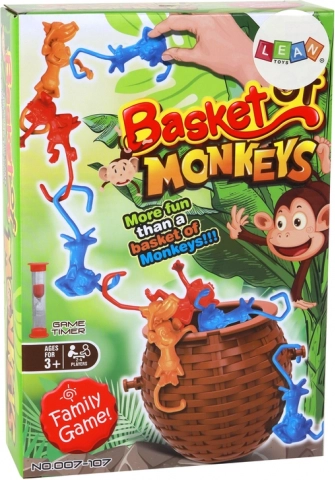 Das Spiel lässt sich leicht variieren – versucht eine Kette nur in einer Farbe oder wettet darauf, wer während der Zeit mehr Äffchen ins Körbchen legt. Außerdem dient das Körbchen nach dem Spielen als praktische Aufbewahrungsbox.