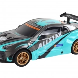 Die robuste Karosserie in türkis-schwarzer Kombination und die goldenen Räder verleihen einen sportlichen Charakter, während der 7,4V-Akku genügend Energie für dynamisches Fahren liefert. Das Modell ist geeignet für Kinder ab 6 Jahren, erfüllt die Normen CE und EN71.