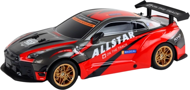 Der realistische Look mit roter Karosserie und goldenen Felgen wird durch Lichteffekte betont, die besonders in der Dämmerung zur Geltung kommen. Enthalten sind ein wiederaufladbarer 7,4 V Akku und ein USB-Ladekabel, sodass Sie schnell wieder auf die Strecke können.