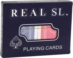 Die Karten sind in einer eleganten Schachtel mit der Aufschrift 'REAL SL. PLAYING CARDS' untergebracht, die ihren Schutz und stilvolles Aussehen gewährleistet.