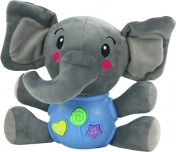 Niedlicher interaktiver Plüschelefant in Blau (19 cm) aus kuschelweichem Material verfügt über drei Tasten: Naturgeräusche, englische Reime und 5 fröhliche Melodien. Tolles Spielzeug zur Förderung der Sinne und der Sprache ab 18 Monaten, Betrieb mit 2× AA.