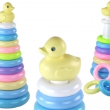 Diese lehrreiche Stapel-Pyramide in Pastellfarben motiviert Kinder, 12 Ringe vom größten zum kleinsten zu sortieren und aufzustecken. Spielerisches Lernen fördert die Feinmotorik, die Hand-Auge-Koordination, Geduld und Fantasie. Das Oberteil ziert ein niedliches Entchen, das zu weiteren Spielen einlädt.