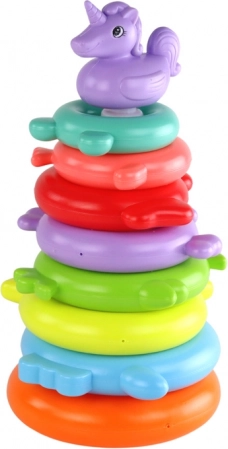Das Spielzeug besteht aus strapazierfähigem Kunststoff mit abgerundeten Kanten, ist leicht und einfach abwaschbar – ideal für den täglichen Spielspaß zu Hause und unterwegs. Die stabile Basis und die Einhornfigur an der Spitze verleihen dem Stapelturm einen zauberhaften Look, der Kinder auf den ersten Blick begeistert.