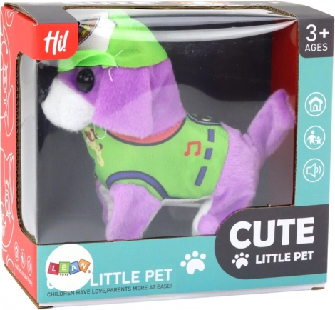 Wir präsentieren Ihnen einen bezaubernden interaktiven Plüschhund, der zum Lieblingsbegleiter Ihres Kindes wird! Dieser niedliche Hund ist lila und trägt eine grüne Mütze und Kleidung. Dank seiner kompakten Maße lässt er sich überallhin mitnehmen. Nach dem Einschalten erwacht er mit fröhlichem Bellen und Bewegungen zum Leben und zieht sofort die Aufmerksamkeit der Kleinsten auf sich. Sein interaktives Verhalten regt Kinder zum Spielen an und sorgt für Lachen über seine lustigen Bewegungen.