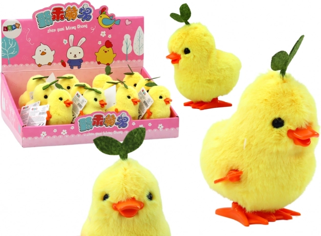 Der Kopf mit dekorativen grünen Blättern verleiht dem Küken zusätzlichen Charme und lässt es wie einen märchenhaften Vogel zwischen Blumen erscheinen. Nach dem Aufziehen beginnt es zu hüpfen, was stundenlangen Spaß und Lachen garantiert. Dieses Spielzeug ist der ideale Begleiter für Spiele und die Entwicklung der Vorstellungskraft bei Kindern.
