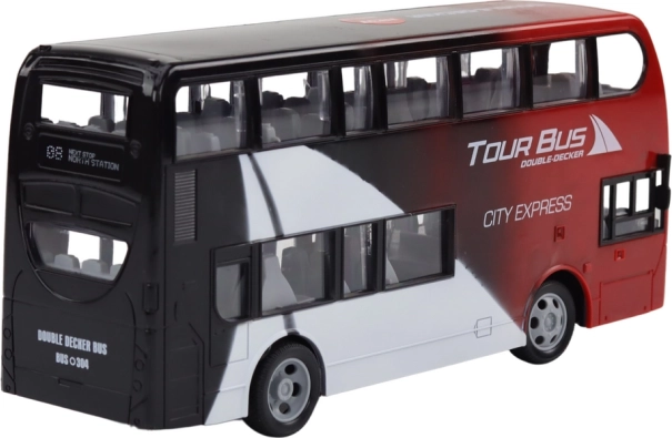 Die Steuerung des ferngesteuerten Doppeldeckerbusses bietet unbegrenzte Bewegungsmöglichkeiten. Gummiräder sorgen für eine sanfte Fahrt auf verschiedenen Oberflächen, während Lichteffekte für Realismus sorgen.