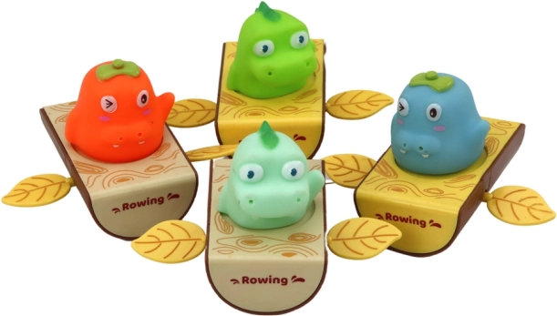 Aufzieh-Spielzeug für die Badewanne – Dinosaurier im Boot ist der ideale Begleiter für fröhliches und kreatives Baden. Einfach das untere Aufziehrad drehen, das Boot aufs Wasser setzen und zusehen, wie es sich dank der zwei seitlichen, blattförmig paddelnden Schaufeln von selbst über die Oberfläche bewegt. Der farbenfrohe Dinosaurier an Bord lädt zu Geschichten und Rollenspielen ein.