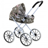 Dieser Puppenwagen ist für spaßige „Spaziergänge“ mit Lieblingsspielzeugen konzipiert. Die großen Schaumräder sorgen für stabilen und leisen Lauf, das klappbare Verdeck schützt die Puppe vor der „Sonne“ und das graue Design mit Sternchen wirkt modern und niedlich. Nach dem Spielen lässt er sich einfach zusammenklappen und nimmt so wenig Platz ein.