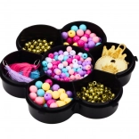 Der praktische Organizer aus Kunststoff in Blumenform hält Perlen, Quasten und Holzanhänger übersichtlich getrennt – alles ist griffbereit, und das Basteln geht schnell und bequem von der Hand.