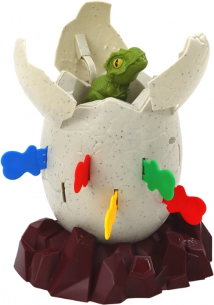 Der herausspringende Dinosaurier ist kein gewöhnliches Spielzeug – es ist eine Erfahrung, die unerwartete Momente voller Freude und Überraschung für die ganze Familie bietet. Platzieren Sie das Dino-Ei auf der braunen Basis und schieben Sie die Dinosaurierfiguren hinein. Anschließend stecken Sie die Plastikstäbe rund um das Ei. Das Spiel wirkt einfach, aber wenn Sie den Stab an die richtige Stelle setzen, springt der Dinosaurier plötzlich aus dem Ei heraus! Das bringt Spaß und Lachen für alle Spieler.