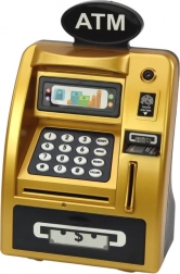 Kinder Geldautomat wurde entwickelt, um Bildung mit Spiel zu kombinieren. Aus robustem Kunststoff gefertigt und stilvoll in Gold und Schwarz gehalten, fügt sich perfekt in jedes Kinderzimmer ein.