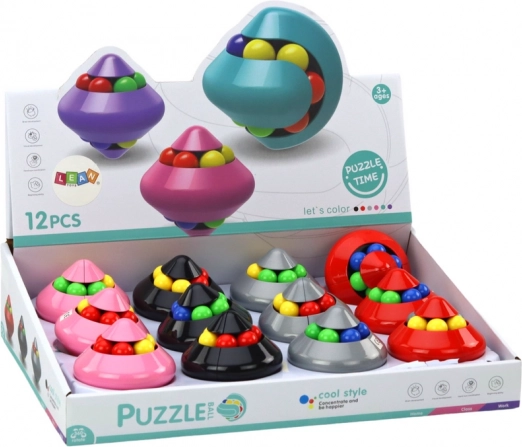 Das Spiel konzentriert sich auf das Drehen der kleinen mittleren Kugel und das Verschieben von Perlen nach oben, unten, links und rechts auf einem beweglichen Zylinder in der Mitte. Der erste Schritt besteht darin, die horizontale Mittelachse so einzurichten, dass sie mit den anderen Rillen übereinstimmt. Dann wird eine Ersatzperle eingesetzt und die gewünschte farbige Perle wird auf die horizontale Mittelachse verschoben.