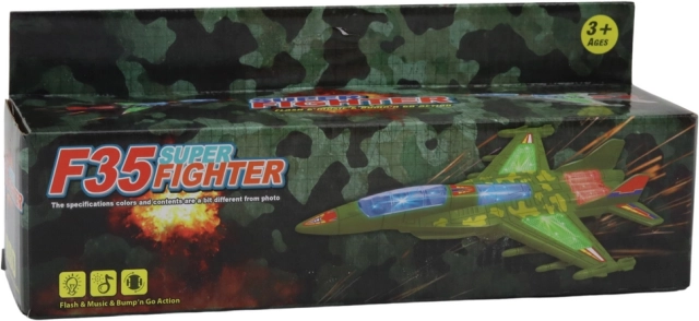 Nach dem Einschalten fährt das Flugzeug selbstständig, blinkt mit bunten Lichtern und spielt Fluggeräusche ab. Das smarte Bump-&-Go-System ändert automatisch die Richtung und weicht Hindernissen sicher aus.