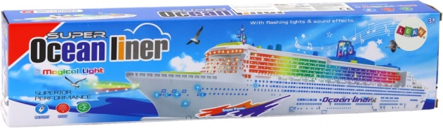 Dieses große, detailreich gestaltete Ausflugsschiff bietet Kindern ein authentisches „See“-Erlebnis. Nach Knopfdruck bewegt es sich selbstständig auf ebenen Flächen, aus dem Lautsprecher ertönen Meeresgeräusche und die Decks erstrahlen in bunten Lichtern. Integrierte Hindernissensoren sorgen dafür, dass das Schiff während der Fahrt automatisch die Richtung ändert und einer Kollision ausweicht.