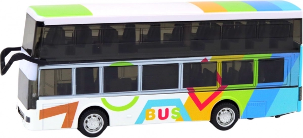 Dieser Doppeldeckerbus bietet Kindern realistischen Spielspaß dank authentischer Geräusche und leuchtender Lichter. Durch den Schwungradantrieb fährt er auf ebenen Flächen leicht an und rollt gleichmäßig weiter. Die Metallausführung erhöht die Robustheit, während das attraktive, farbenfrohe Design zu weiteren Spielszenarien einlädt.