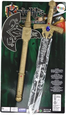 Das kindgerechte Ritterset umfasst ein Schwert und eine Axt mit detailreichen dekorativen Ausführungen in Gold-, Silber- und Bronzetönen. Dank der Soundeffekte schlüpfen Kinder leicht in die Rolle mutiger Helden, die eine Burg verteidigen oder auf Abenteuerzüge gehen. Die Spielzeuge fördern Kreativität, Bewegung und die Entwicklung der Fantasie.
