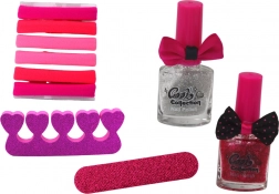 Im Set ist auch ein Nageldekorations-Set enthalten, das eine Nagelfeile, einen Abscheider und zwei glitzernde Nagellacke in Silber und Pink umfasst. Kreativität in der Maniküre ist zum Greifen nah!