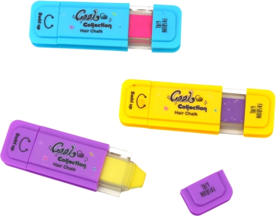 Entdecke die endlosen Styling-Möglichkeiten mit unserem Set zum Haarefärben und Nageldekorieren. Das Set enthält drei bunte Haarkreiden in den Farbtönen Violett, Pink und Gelb, die eine einfache und temporäre Farbänderung der Haare ermöglichen. Du kannst einzigartige Frisuren kreieren, ohne dauerhafte Veränderungen befürchten zu müssen.