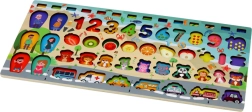 Das Set enthält räumliche Holzteile, die das Kind den entsprechenden Stellen auf dem Brett zuordnen kann. Dies ist nicht nur eine unterhaltsame Tätigkeit, sondern auch eine Möglichkeit, manuelle Fertigkeiten und die Auge-Hand-Koordination zu fördern.