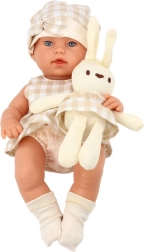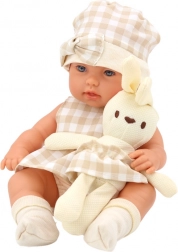 Baby-Puppe im Tragegurt Häschen Kariertes Outfit Beige