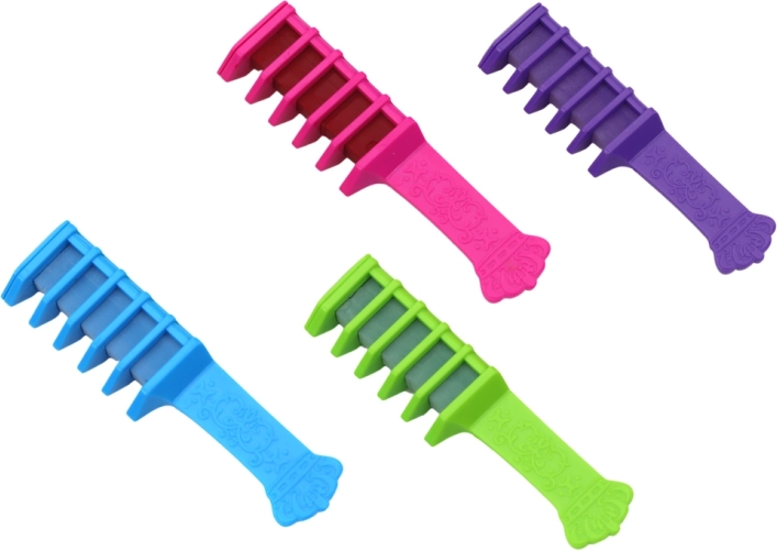 Kämme zum Färben der Haare mit Kreide ermöglichen Kindern, sicher und kreativ mit Haarfarben zu experimentieren. Jede und jeder kann damit der eigenen künstlerischen Ader freien Lauf lassen und einzigartige, farbenfrohe Frisuren kreieren. Die Kreide ermöglicht intensive Nuancen, Regenbogen-Strähnen, Ombré-Effekte oder farbige Spitzen – so wird jede Frisur einzigartig.