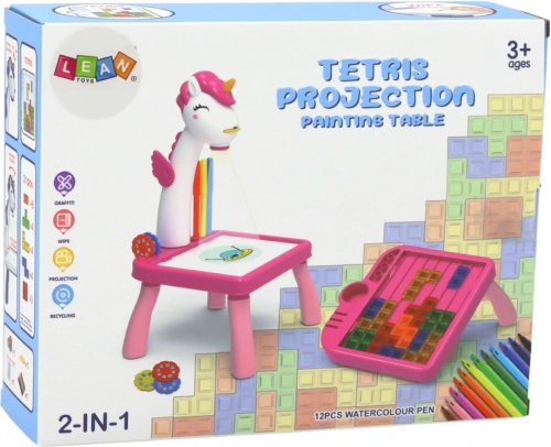 Entdecken Sie die Magie des Zeichnens mit dem Mini-Projektor in Form eines niedlichen Einhorns. Kinder projizieren einfach die Vorlage auf die Tischunterlage und zeichnen sie mit Markern nach – so entwickeln sie schnell visuelle Wahrnehmung, Geduld und Geschicklichkeit. Der zweite Teil des Sets ist das TETRIS-Puzzle, das räumliches Vorstellungsvermögen und Planung trainiert.