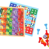Zum Set gehören die beliebten Spiele Mensch ärgere dich nicht und Leiterspiel (Snakes and Ladders). Sie fördern Logik, Geduld und vermitteln Fair Play auf spielerische Weise.