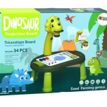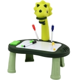 Dieser Kinderprojektor in Dinosaurierform projiziert Bilder auf eine weiße Fläche, sodass Kinder ganz einfach nachzeichnen und das Zeichnen lernen können. Drehbare Scheibenkassetten bieten insgesamt 24 Motive, die zu Bildern und Collagen inspirieren. Der robuste, niedrige Tisch ist fürs bequeme Sitzen von Kindern konzipiert und dient auch als Spielfläche.
