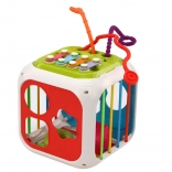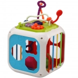 Das Kind kann das Erkennen von Formen und Farben trainieren, indem es die Würfel in die passenden Löcher im Sortierwürfel einfügt. Dies ist eine hervorragende Möglichkeit, manuelle Fähigkeiten und die Koordination von Bewegungen zu entwickeln. Die herausnehmbare Wand des Würfels verbirgt weitere attraktive Elemente wie Becken, Zahnräder und Schnüre für interaktives Spielen.